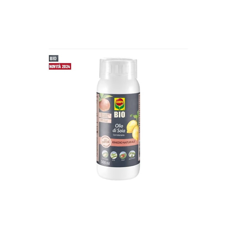 COMPO BIO Olio di Soia è un olio vegetale e biodegradabile, composto da sole sostanze naturali. Ideale per potenziare le difese delle piante nei confronti di insetti quali cocciniglia, afidi, mosche bianche (aleurodidi) e acari (ragnetto rosso), sia sulle loro forme giovanili che su adulti; manifesta un'azione anche su uova di insetti e acari.
